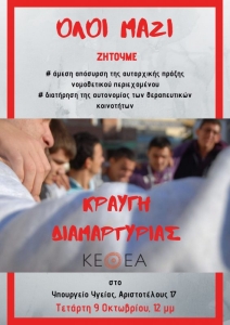 Σας προσκαλούμε την Τετάρτη 9 Οκτωβρίου 2019, στις 11:30 το μεσημέρι στη διαμαρτυρία του ΚΕΘΕΑ έξω από το Υπουργείο Υγείας. Μέλη, γονείς, εργαζόμενοι και φίλοι του ΚΕΘΕΑ ενώνουμε τις φωνές μας σε δυνατή κραυγή: