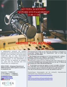 Τη Δευτέρα 26 Ιουνίου 2023 και ώρα 15.00, κάνε κλικ στο διαδικτυακό ραδιόφωνο STROFI με την ομάδα ραδιοφώνου της Θεραπευτικής Κοινότητας ΣΤΡΟΦΗ ΣΤΡΟΦΗ ΣΤΟ ΡΑΔΙΟΦΩΝΟ