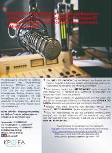Τη Τετάρτη 25 Οκτωβρίου 2023 και ώρα 15.00, κάνε κλικ στο διαδικτυακό ραδιόφωνο STROFI με την ομάδα ραδιοφώνου της Θεραπευτικής Κοινότητας ΣΤΡΟΦΗ ΣΤΡΟΦΗ ΣΤΟ ΡΑΔΙΟΦΩΝΟ