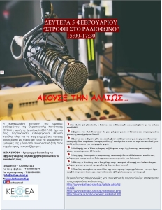 Τη Δευτέρα 5 Φεβρουαρίου 2024 και ώρα 15.00, κάνε κλικ στο διαδικτυακό ραδιόφωνο STROFI με την ομάδα ραδιοφώνου της Θεραπευτικής Κοινότητας ΣΤΡΟΦΗ ΣΤΡΟΦΗ ΣΤΟ ΡΑΔΙΟΦΩΝΟ