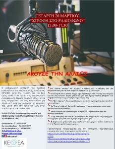 Τη Τετάρτη 20 Μαρτίου 2024 και ώρα 15.00, κάνε κλικ στο διαδικτυακό ραδιόφωνο STROFI με την ομάδα ραδιοφώνου της Θεραπευτικής Κοινότητας ΣΤΡΟΦΗ ΣΤΡΟΦΗ ΣΤΟ ΡΑΔΙΟΦΩΝΟ