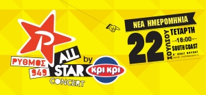 To νέο μουσικό γενονός της πόλης, το Ρυθμός 949 ALL STAR CONCERT by ΚΡΙ ΚΡΙ, θα πραγματοπηθεί την Τετάρτη 22 Ιουλίου 2015.