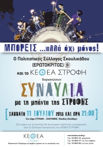 Δεν είναι διατεθειμένοι να “σπαταλούν” τις διακοπές τους στο νησί της Ζακύνθου μόνο για χαλάρωση αλλά θέτουν στόχους και μάλιστα μετά μουσικής. Έτσι, το Σάββατο 11 Ιουλίου στις 9μμ από το λόφο του Στράνη θα ξεχυθούν ακούσματα ελληνικής και ξένης ροκ μουσικής από τη μπάντα της ΣΤΡΟΦΗΣ σε συνεργασία με τον Πολιτιστικό Σύλλογο “Ερωτόκριτος”.