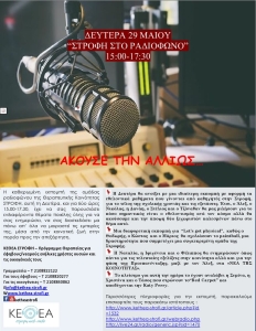 Τη Δευτέρα 29 Μάϊου 2023 και ώρα 15.00, κάνε κλικ στο διαδικτυακό ραδιόφωνο STROFI με την ομάδα ραδιοφώνου της Θεραπευτικής Κοινότητας ΣΤΡΟΦΗ ΣΤΡΟΦΗ ΣΤΟ ΡΑΔΙΟΦΩΝΟ