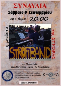 Συναυλία της μπαντας της Στροφής το Σάββατο 9 Σεπτεμβρίου 2023 στη Πλατεία Ηρώων Δήμου Μαντουδίου - Λίμνης - Αγίας Άννας Ευβοίας