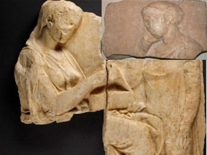 Η ταύτιση αυτών των δύο θραυσμάτων που είχαν φθάσει –φυσικά δια παράνομης οδού _ στο Γκέτι είχε επισημανθεί ήδη από το 1975 αλλά μόλις πριν από λίγο καιρό το αμερικανικό μουσείο παραδέχθηκε ότι πρόκειται για κλεμμένα και συμφώνησε για την επιστροφή τους στην Ελλάδα, προκειμένου να συνενωθούν με το τρίτο κομμάτι που βρίσκεται στο Μουσείο Κανελλοπούλου.