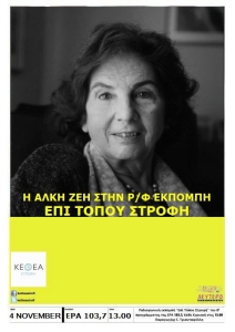 Η ΕΠΙ ΤΟΠΟΥ ΣΤΡΟΦΗ με καλεσμένη την Άλκη Ζέη θα μεταδοθεί σε επανάληψη στις 4/11/12 στους 103,7